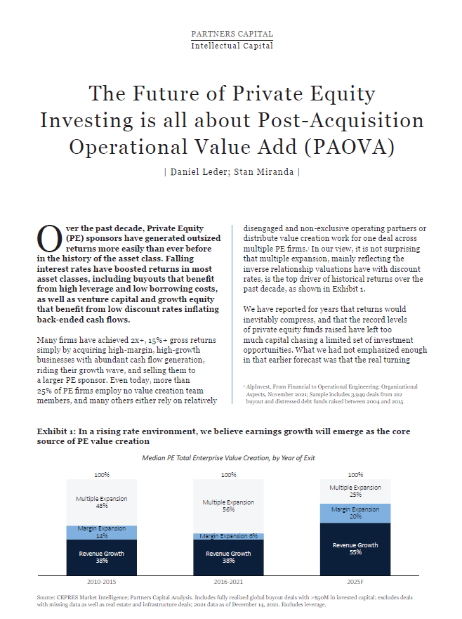 Key insights from the Partners Capital whitepaper on The Future of Private Equity Investing is all about PAOVA